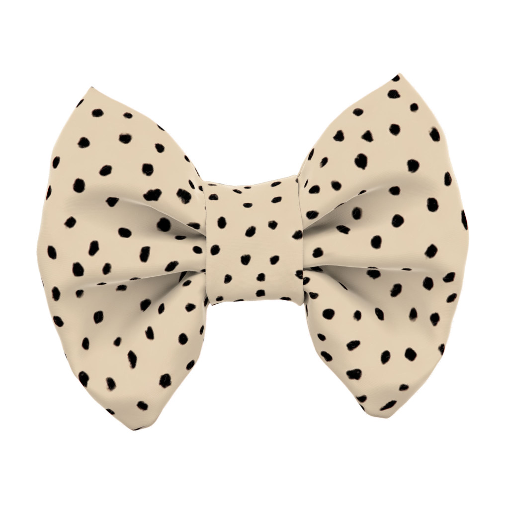 Fekete foltok bézs alapon mintás csokornyakkendő – Kutyáknak, több méretben