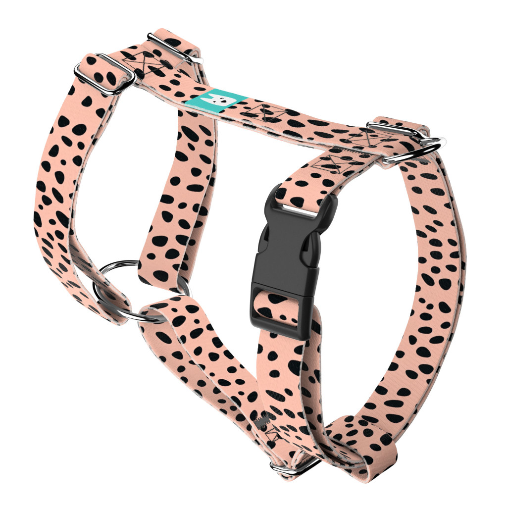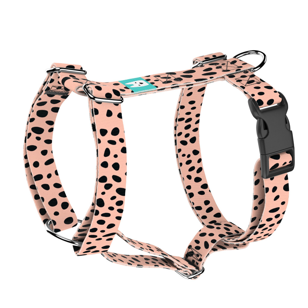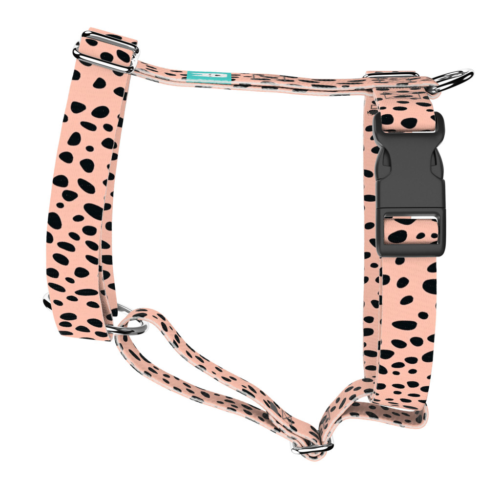 Fekete foltok rózsaszín alapon mintás hám – Kutyáknak és macskáknak, több méretben