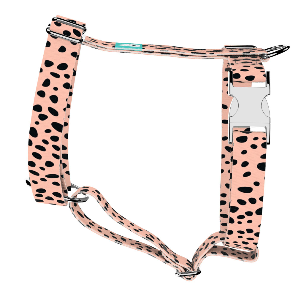 Fekete foltok rózsaszín alapon mintás hám – Kutyáknak és macskáknak, több méretben