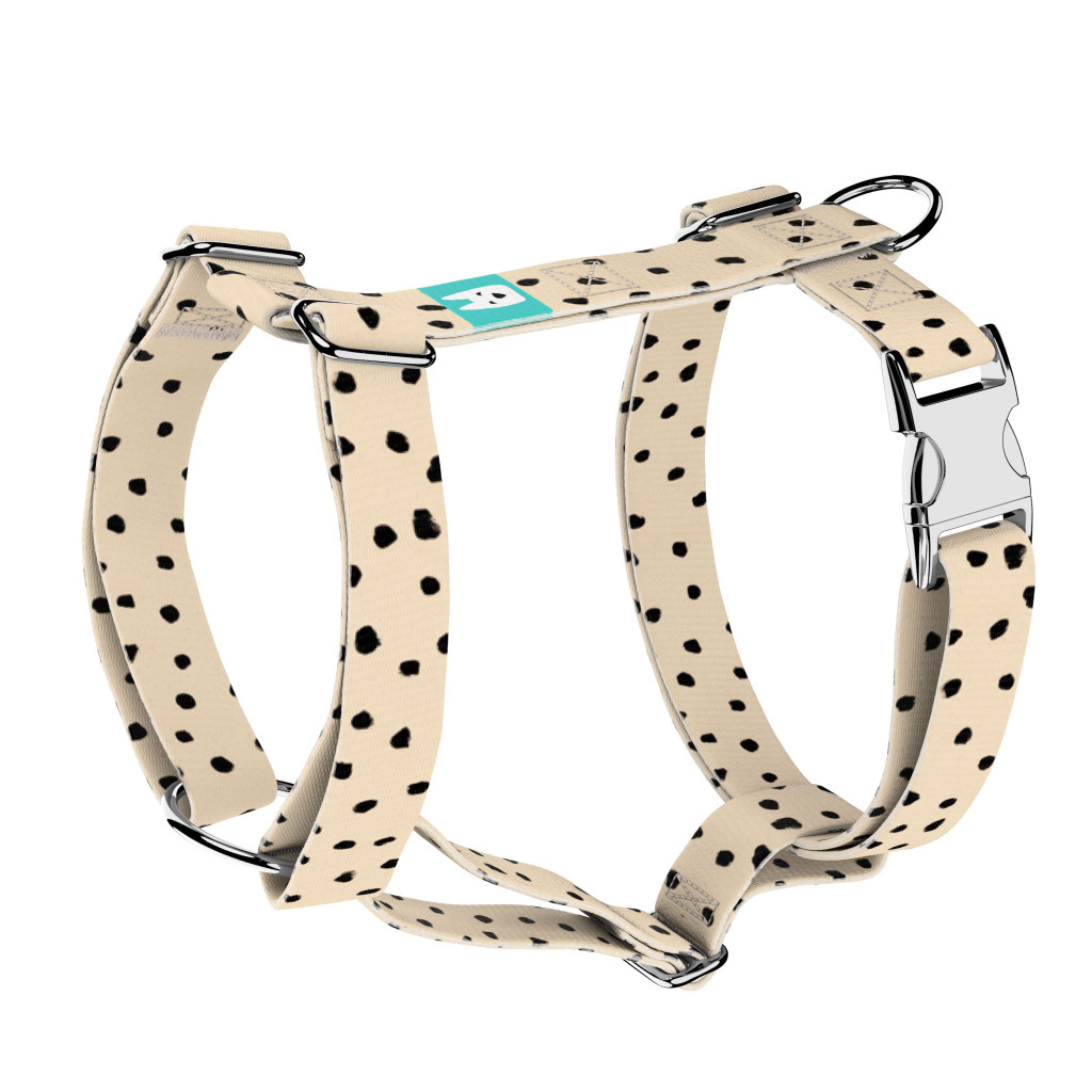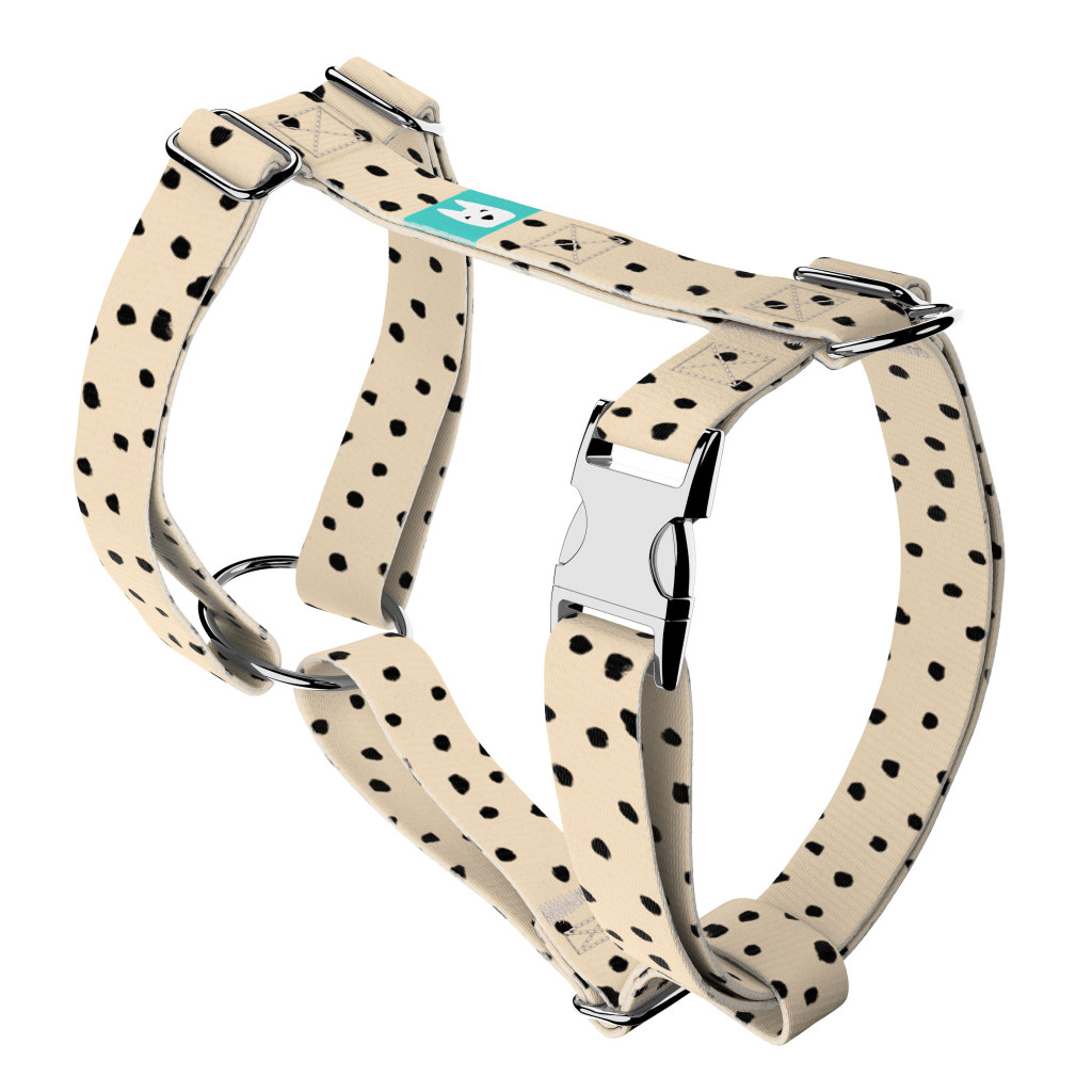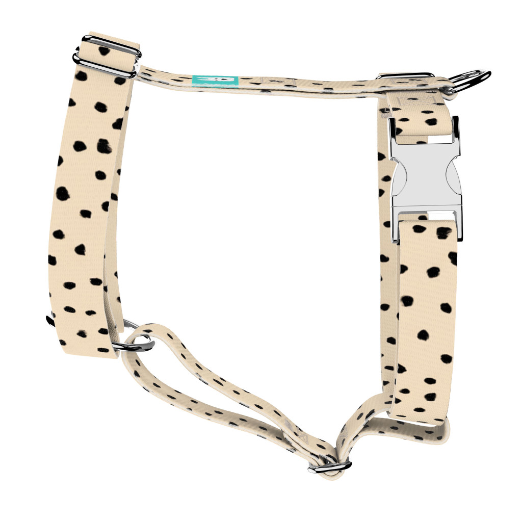 Fekete foltok bézs alapon mintás hám – Kutyáknak és macskáknak, több méretben