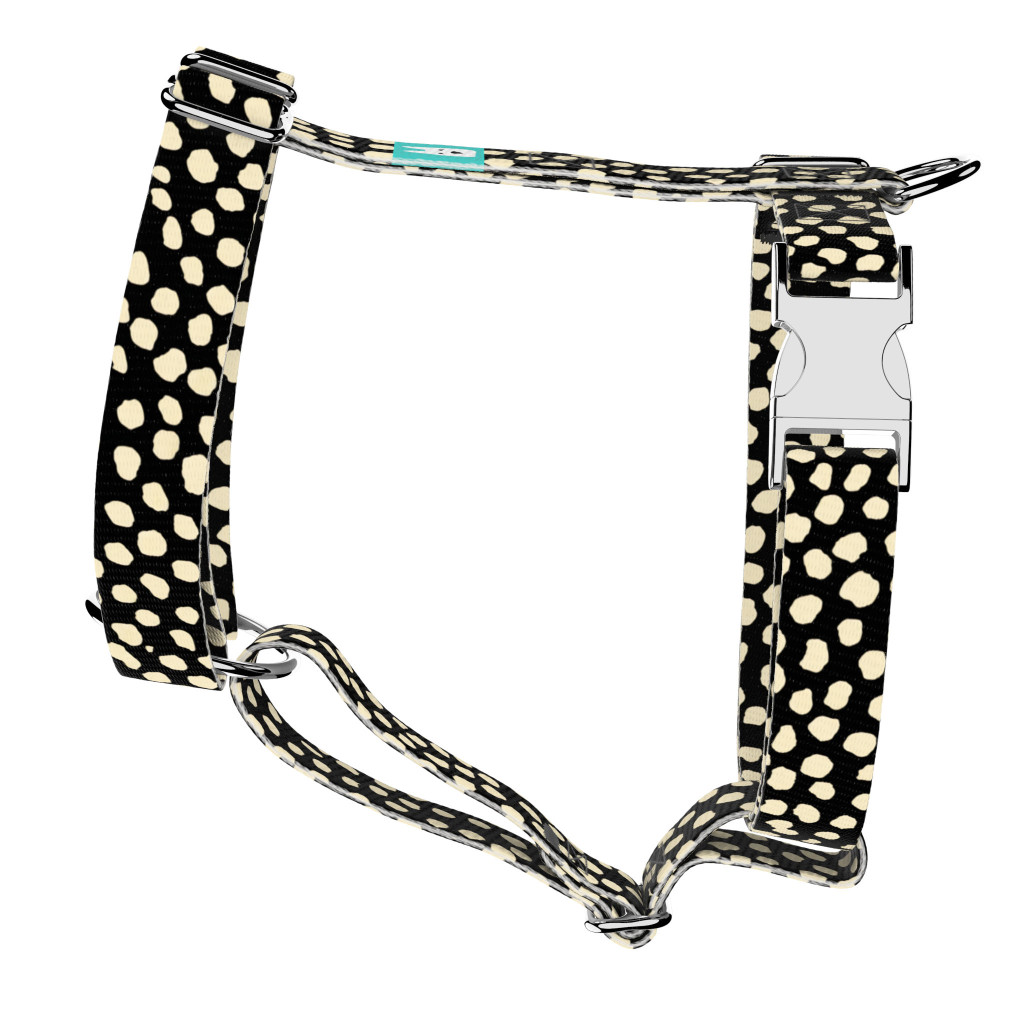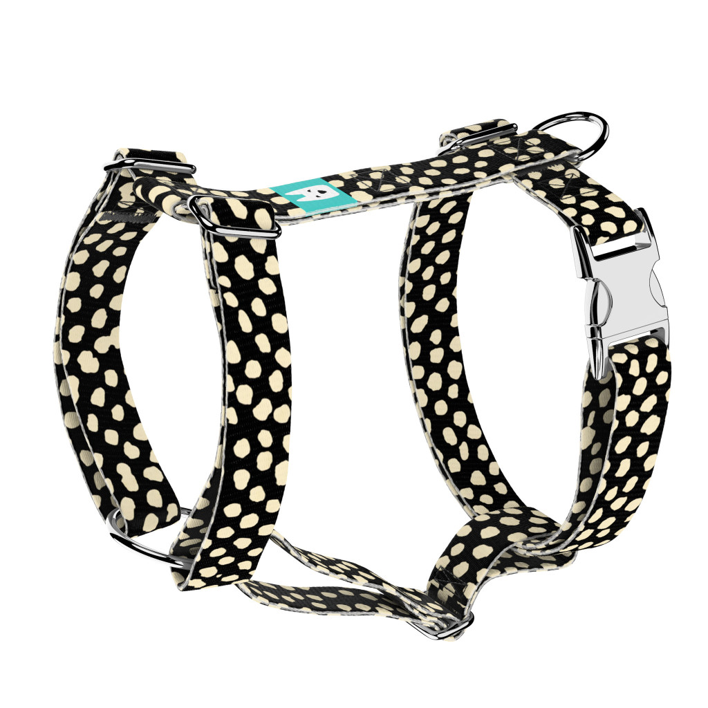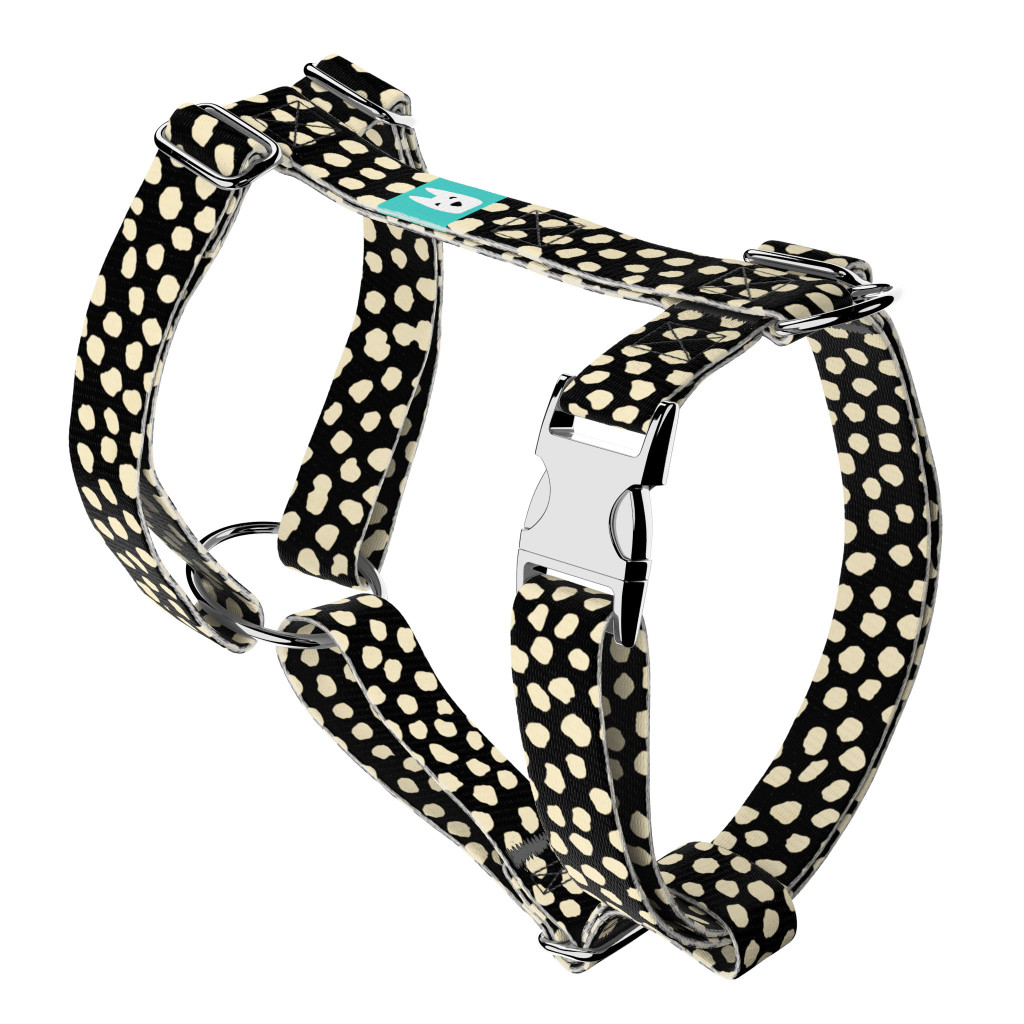 Bézs foltok fekete alapon mintás hám – Kutyáknak és macskáknak, több méretben