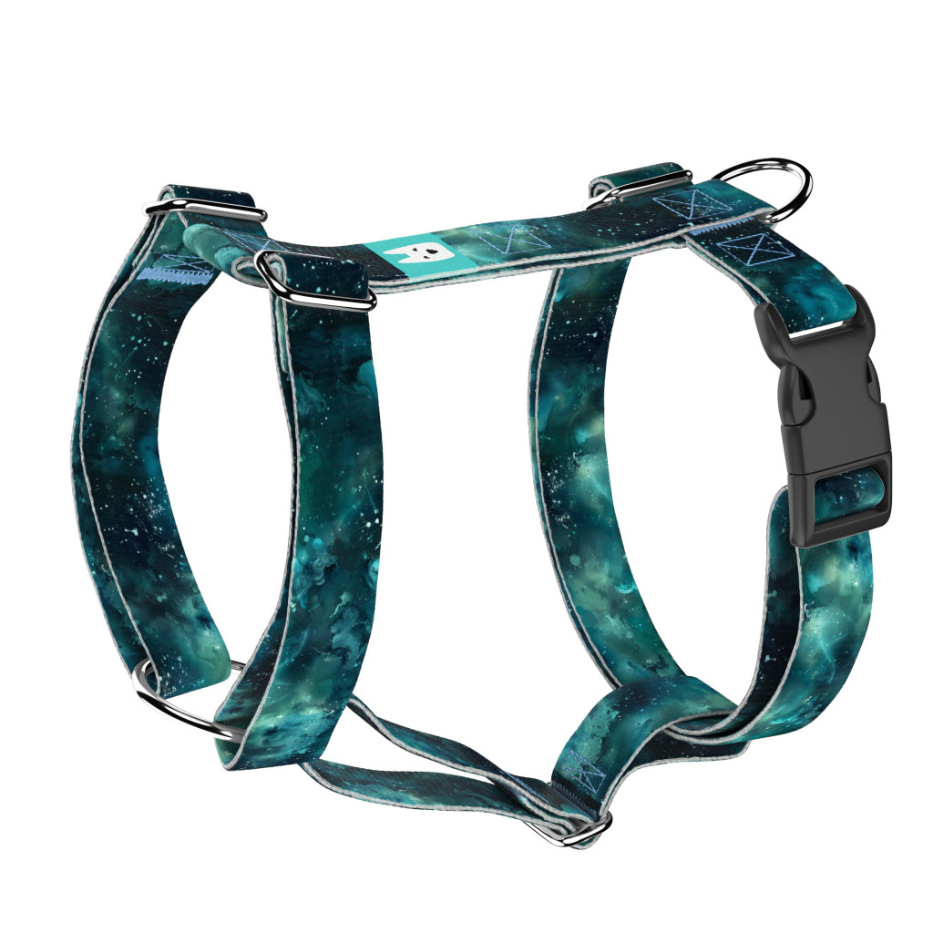Zöld galaxis mintás hám – Kutyáknak és macskáknak, több méretben