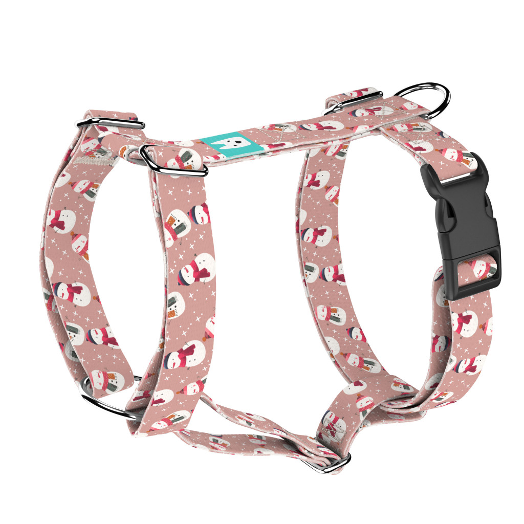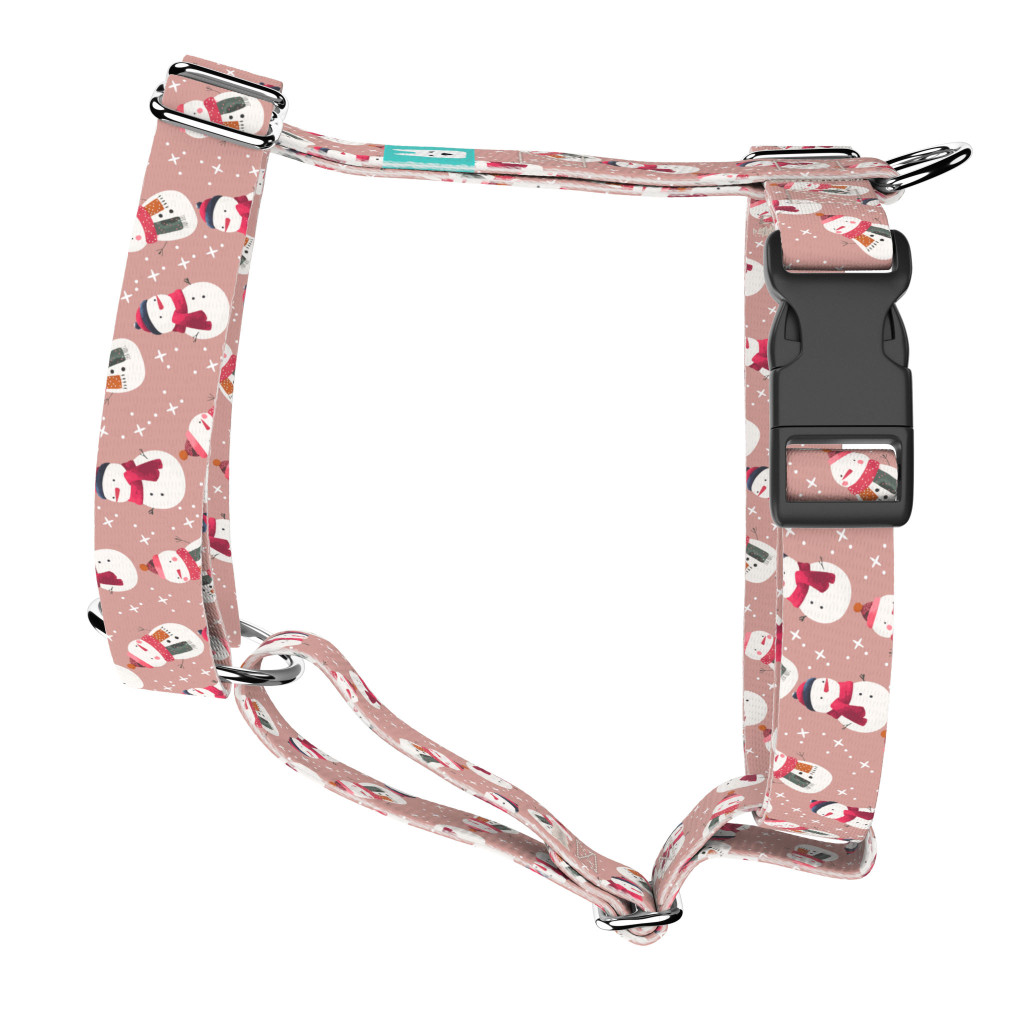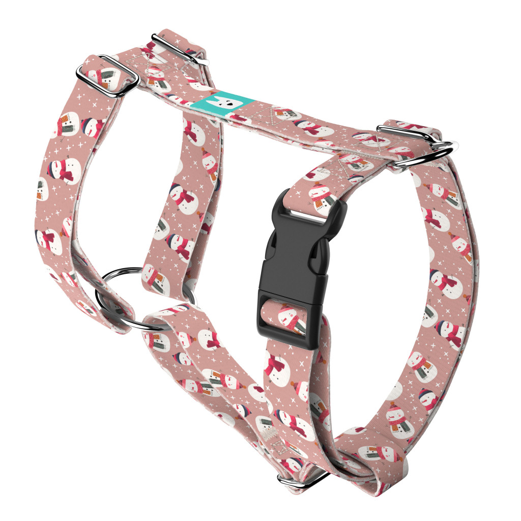 Pasztell rózsaszínes hóember mintás hám – Kutyáknak és macskáknak, több méretben