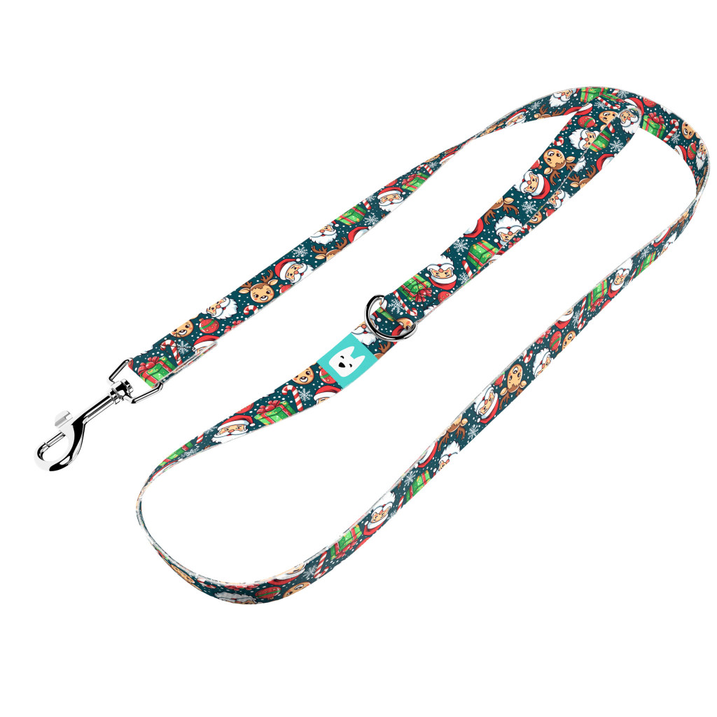 Santa and the reindeers patterned leash for your dog in different sizes.