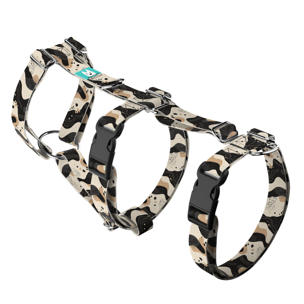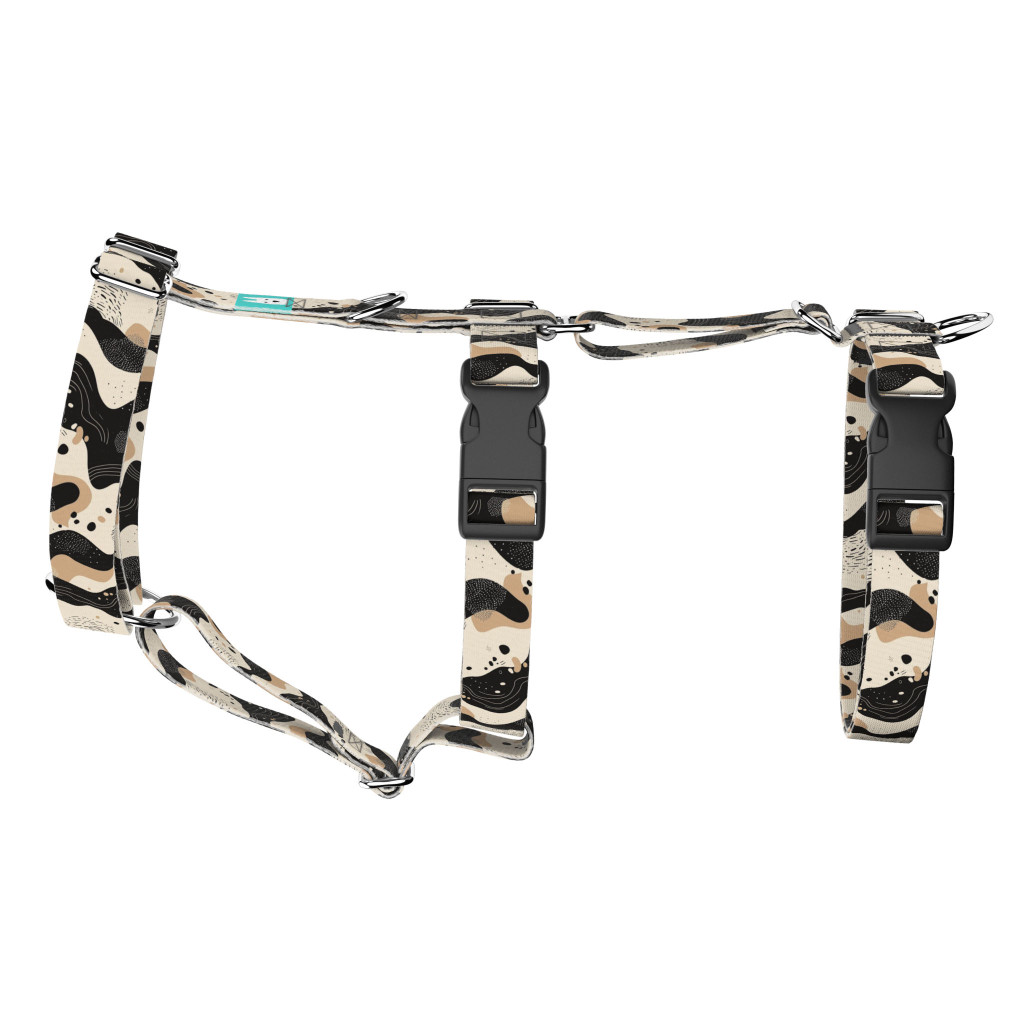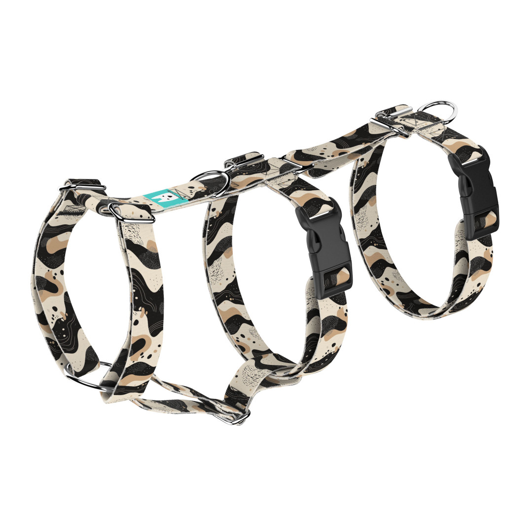 Bézs és fekete mintás belépős biztonsági hám kutyáknak és macskáknak. – Több méretben elérhető