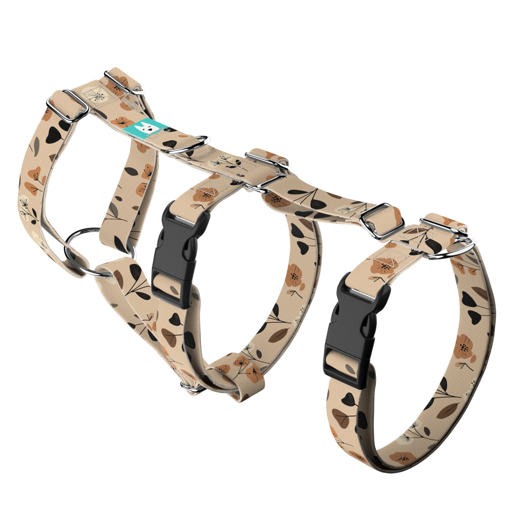 Pasztell virágok mintás belépős biztonsági hám kutyáknak és macskáknak. – Több méretben elérhető