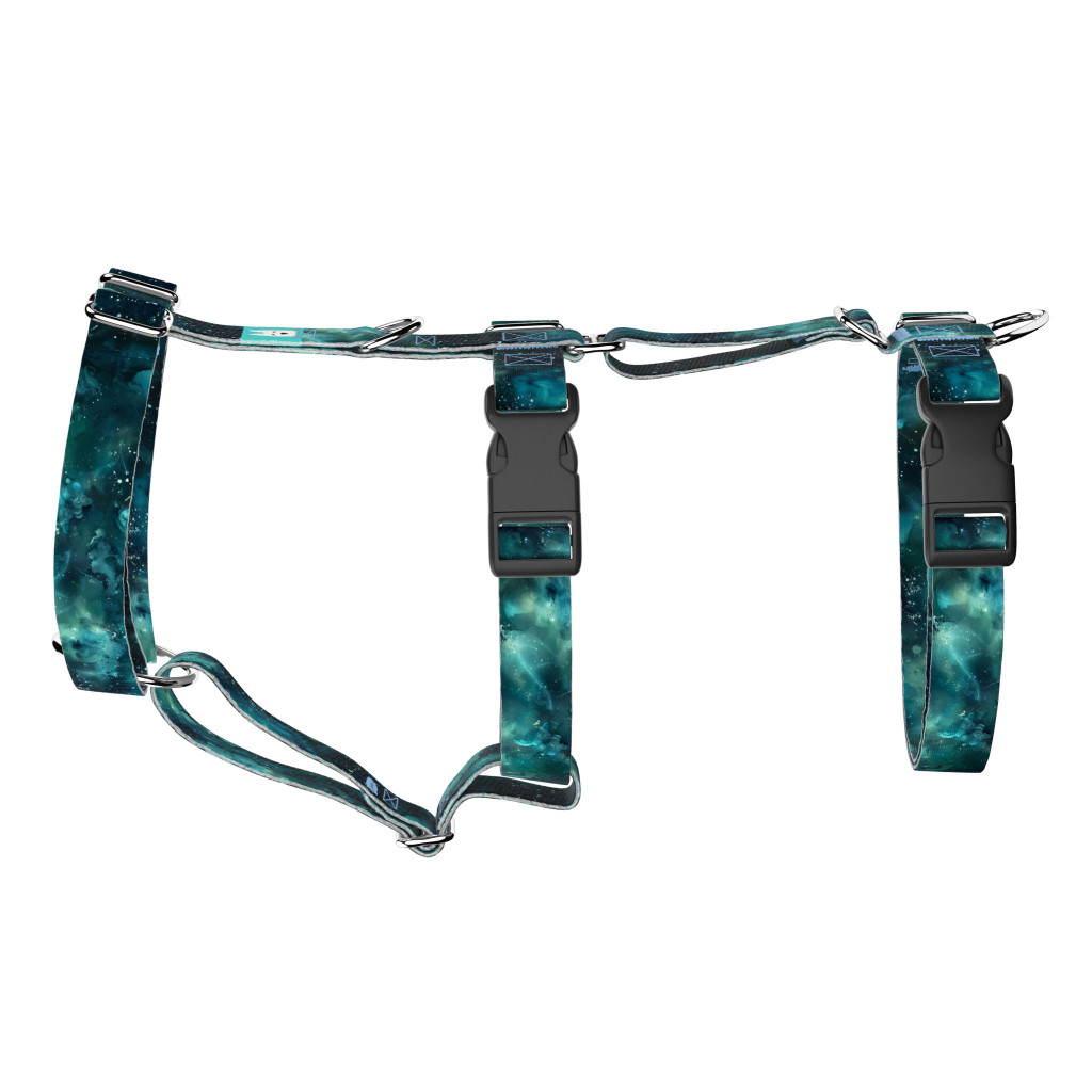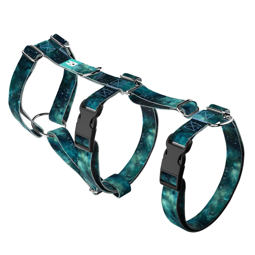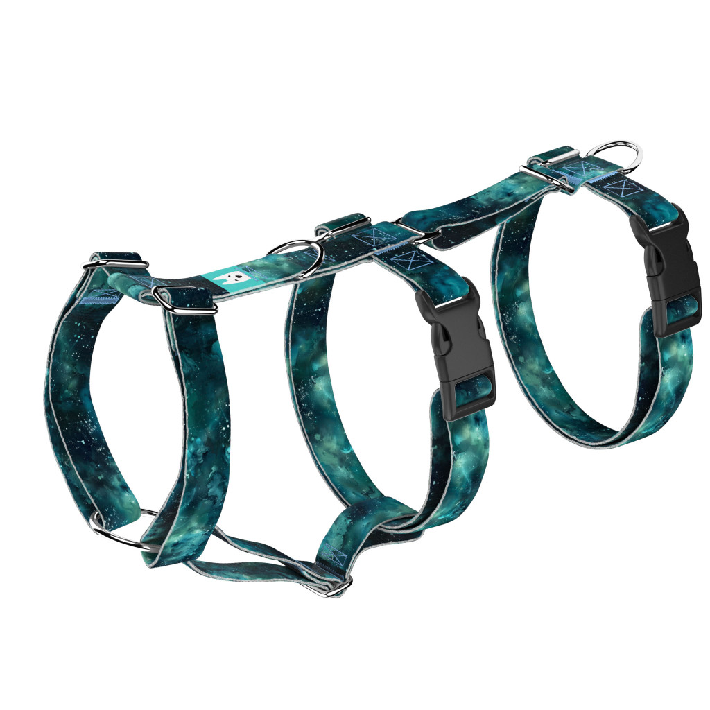 Zöld galaxis mintás belépős biztonsági hám kutyáknak és macskáknak. – Több méretben elérhető