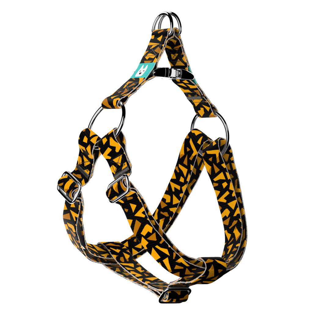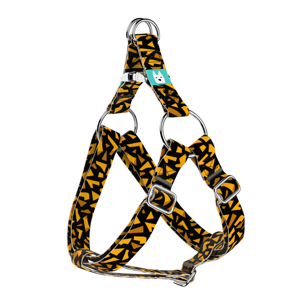 Sárga és fekete mintás belépős hám kutyáknak. – Több méretben elérhető