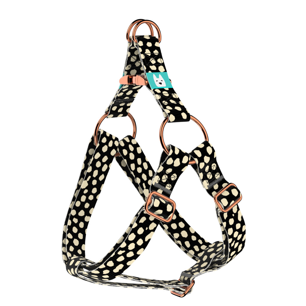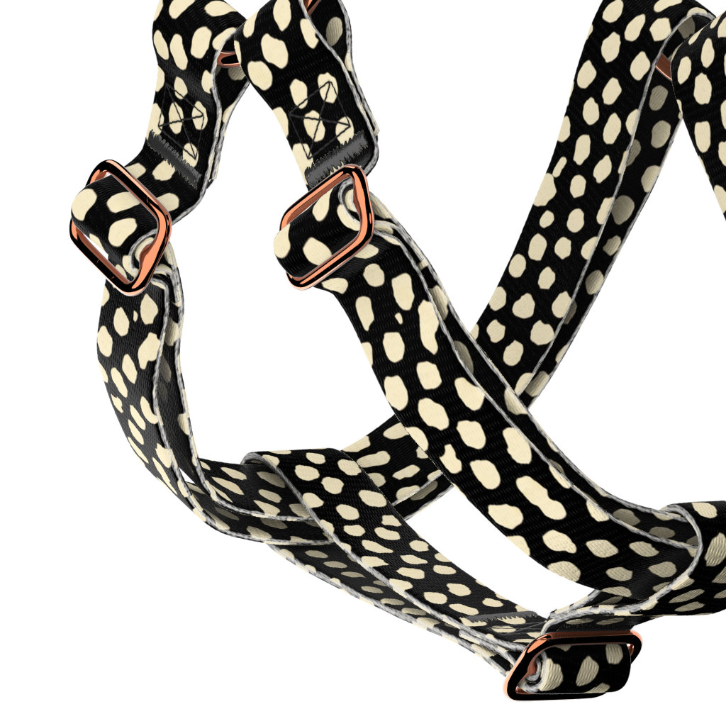 Bézs foltok fekete alapon mintás belépős hám kutyáknak. – Több méretben elérhető