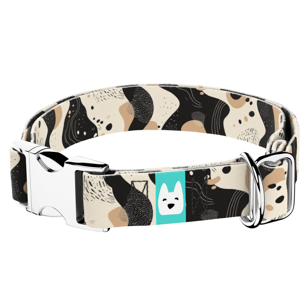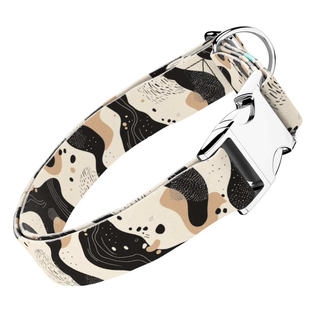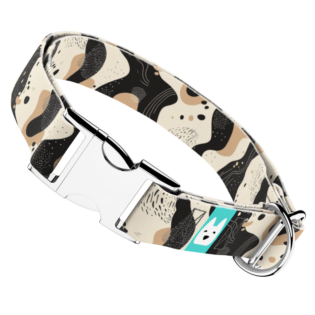 Bézs és fekete mintás csatos nyakörv kutyádnak különböző méretekben.