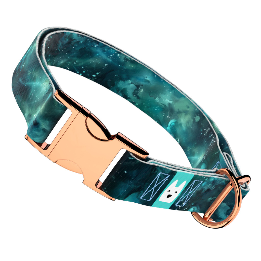 Zöld galaxis mintás csatos nyakörv kutyádnak különböző méretekben.