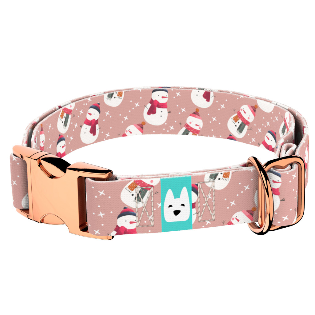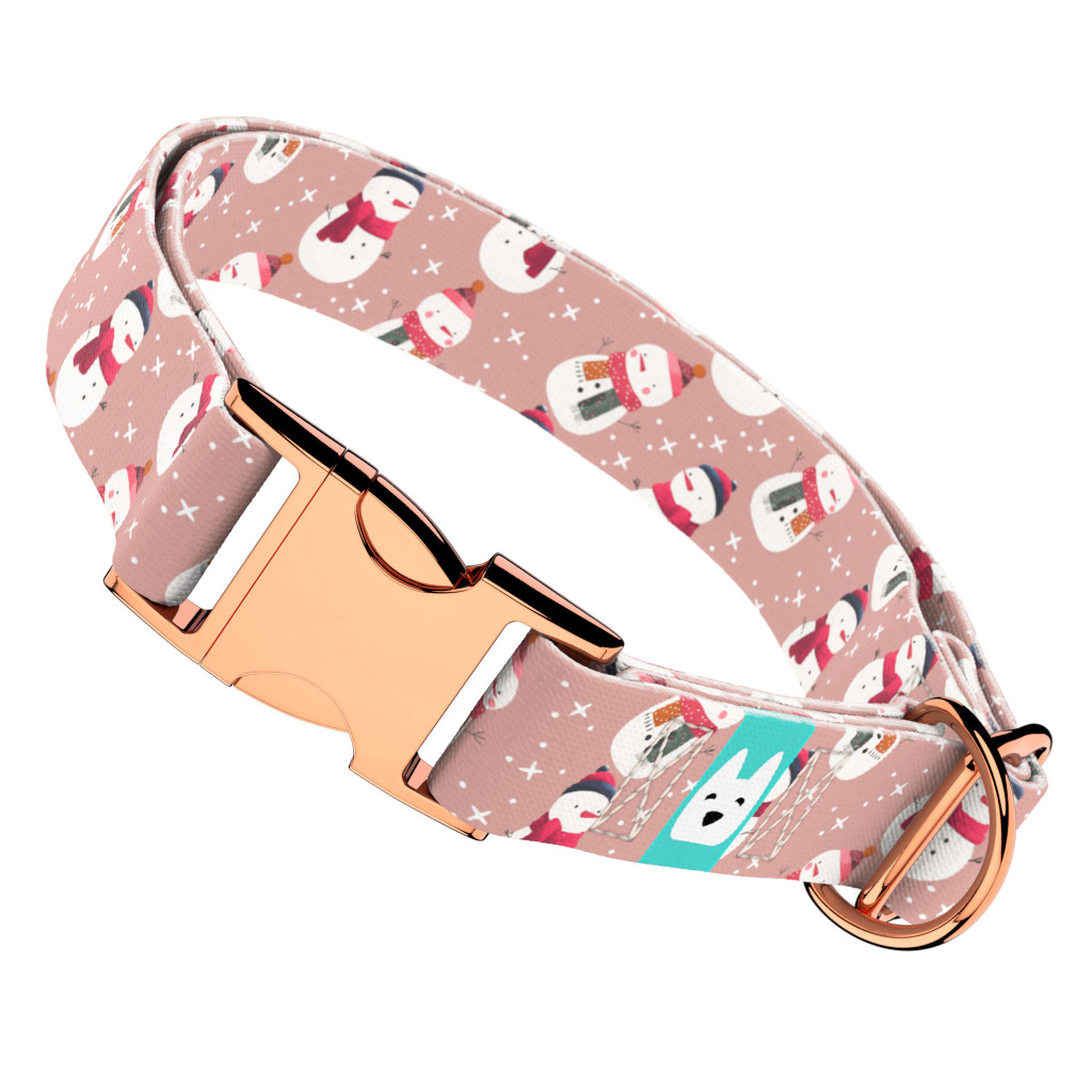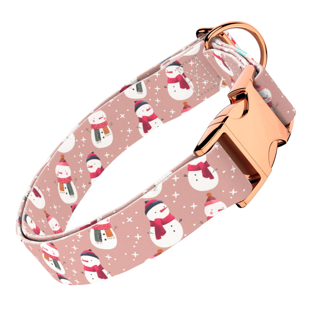 Pasztell rózsaszínes hóember mintás csatos nyakörv kutyádnak különböző méretekben.