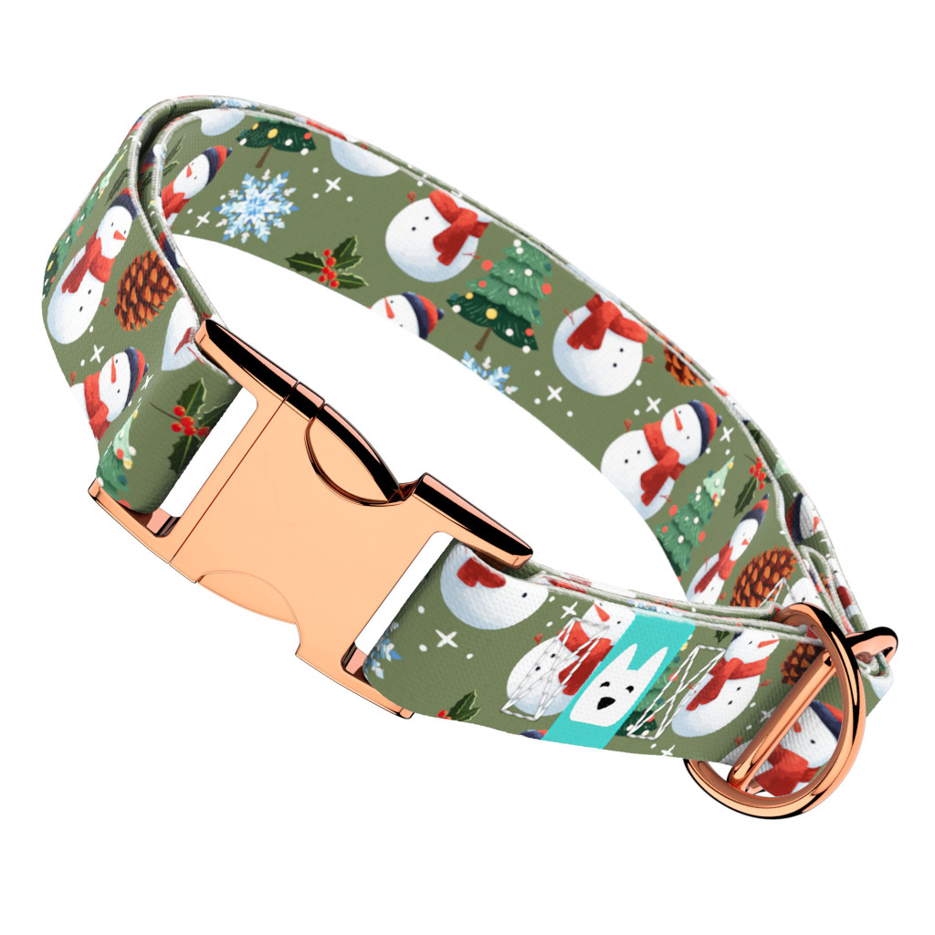 Hóember mintás csatos nyakörv kutyádnak különböző méretekben.