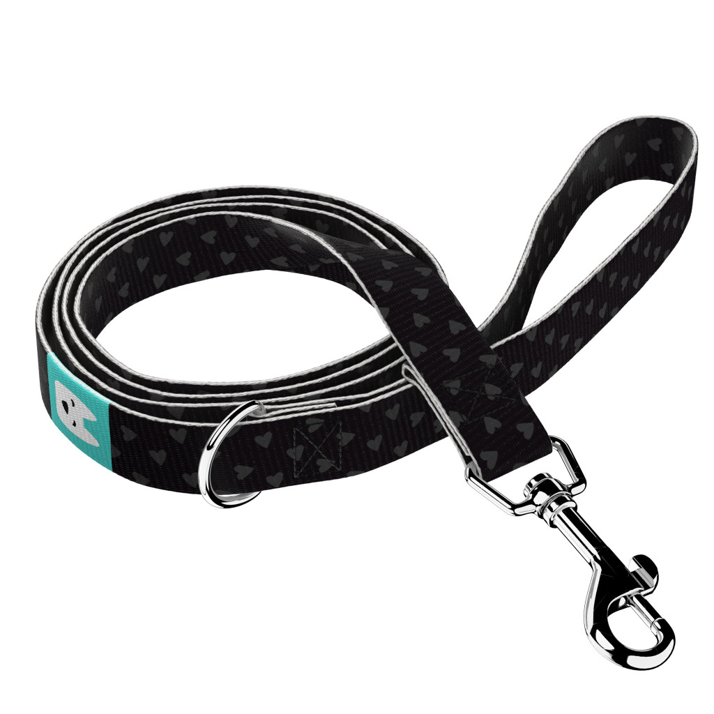 Szivecskés, fekete - Kutya Póráz - Black Hearts on Black - april & june